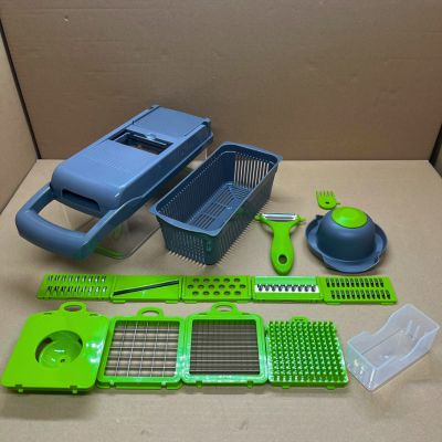 ✅ Composition (16) : 7 éléments de découpes, 1 grille poussoir, 1 éplucheur, 1 bac de récupération, 1 panier, 1 bouton poussoir, 1 peigne de nettoyage, 1 séparateur œuf blanc/jaune, 1 bac de rangement et 1 mandoline cuisine avec bac transparent ;